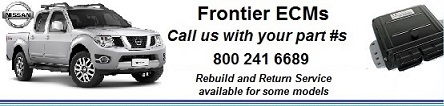 Nissan Frontier ECU Exchange with 5 year warranty Having trouble with your Frontier ECU? These are very popular Nissan ECUs. For the Frontier ECU replacement it is usually the 2004 - 2012 year range that people need. We sell them often, and we likely have your Nissan Frontier ECU remanufactured in stock. ![]() Tenemos computadoras para reperar tu Frontier con 5 años garantía. (llamar con el numeros del parto. Puedes enviarnos tu computadora para seguridad transfer gratis.) Like many other Nissan vehicles, the Frontier models experience a high rate of ECU failures. We stock these by part number and have most engine computer versions of this vehicle rebuilt and ready to ship out. Look for the MEC part number on your ECU, it is very important to match with the appropriate ECU for proper function. Buy from us and eliminate the need for reprogramming Free Security Transfer! (Save a couple hundred dollars) ![]() You can buy a Frontier ECU replacement from us and have it programmed for the security after you install. Or send us your ECU & we will transfer the security to the replacement you purchased from us. That way no ECU "reprogramming' or "reflashing" is needed at installation. We have a large number of Nissan ECUs in stock. All of our Frontier ECUs are remanufactured with 5 year unlimited mileage warranty. Call us with the MEC part number from your ECU 800 241 6689, or text 903 216 6456 |